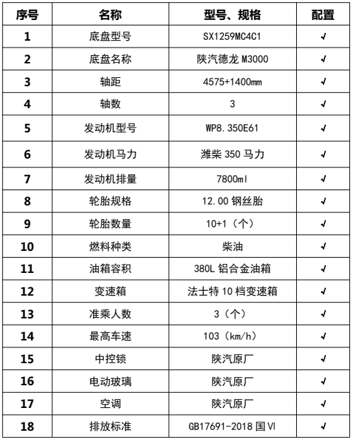 ??????湖北程力汽車:程力CL5250TFC6BLS型陜汽德龍后八輪瀝青同步碎石封層車產(chǎn)品型號及參數(shù)配置,程力CL5250TFC6BLS型陜汽德龍后八輪瀝青同步碎石封層車高清圖片,程力汽車系列程力CL5250TFC6BLS型陜汽德龍后八輪瀝青同步碎石封層車最新報價請撥打客服熱線。車輛主要配置 產(chǎn)品商標 程力牌 公告批次 372(擴展) 產(chǎn)品名稱 同步碎石封層車 產(chǎn)品型號 CL5250TFC6BLS 總質(zhì)量(Kg) 25000 罐體容積(m3) 額定載質(zhì)量(Kg) 7070 外形尺寸(mm) 9900 × 2550 × 3820 整備質(zhì)量(Kg)...