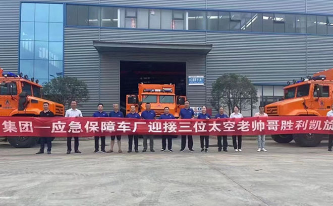 程力制造的航空員保障車迎接神州十二號航天英雄凱旋