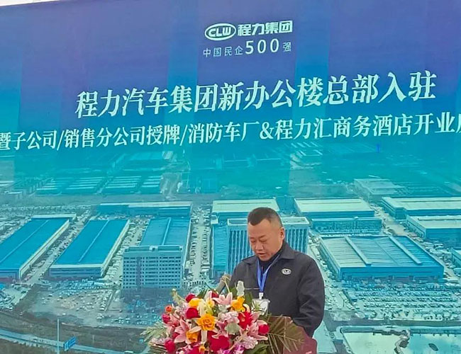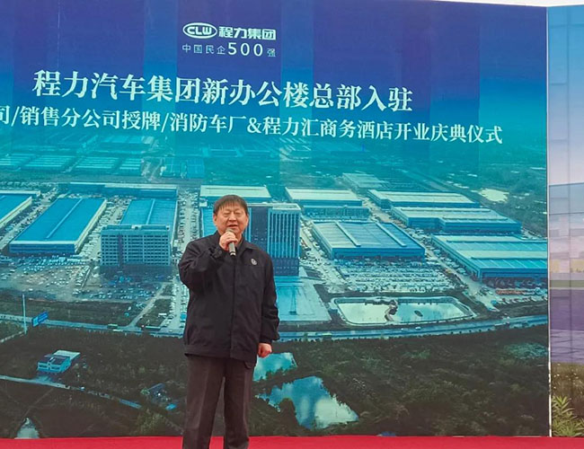 在程力集團(tuán)新廠辦公大樓總部入駐慶典會(huì)上,集團(tuán)總經(jīng)理程阿羅為程力消防車公司總經(jīng)理汪東洋,舉行了消防器材廠開(kāi)業(yè)授牌儀式,汪東洋總經(jīng)理作了表態(tài)和發(fā)言。