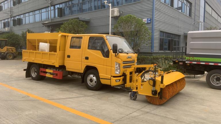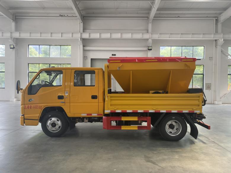 上裝配置 箱體尺寸2600*2060*400mm,箱體內(nèi)裝 3立方融雪撒布機(jī),撒布機(jī)采用 V 型料倉,結(jié)構(gòu)簡單可靠,使融雪劑自動(dòng)落料,出料完全,無殘留。駕駛室可加裝2米除雪鏟或者2米除雪滾。
